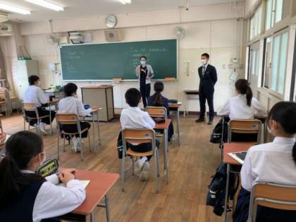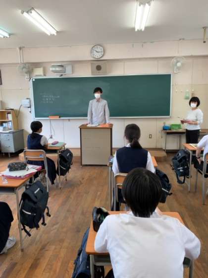 5教科の説明や新しく来られた先生の自己紹介、課題に取り組んでいます。みんな真剣に話を聞いて取り組んでいました。