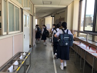 次の登校日26日は、班によって登校時間が変わります。配布されたプリントをしっかり読みましょう。
