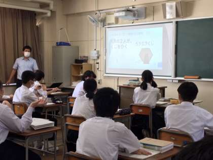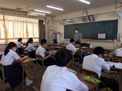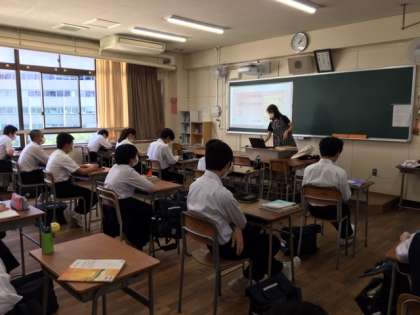 3年生の登校日。後半の午後の登校は偶数グループです。先生方はエッセンスを凝縮した25分授業に、ICT機器の活用を織り交ぜるなどの工夫を重ねて、授業を進めています。