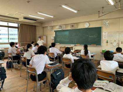 先生はフェイスシールド、マスクをして感染防止に努めています。