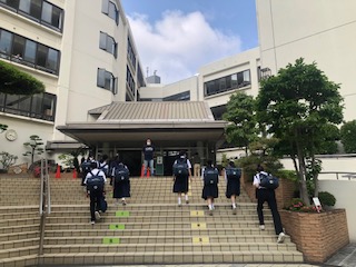 奇数班から、今日も元気に登校しています。