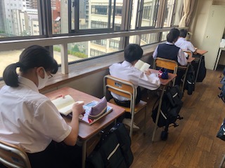 手洗いを済ませ、クラスで朝読書に取組みました。好きな作家の小説を読んだり、電車などの趣味に関する本を読んだりしています。