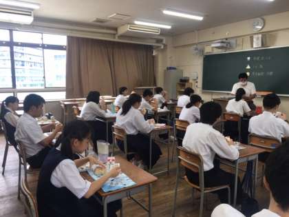 今日の給食は、大型コッペパンと牛乳、りんごジャムというメニューです。