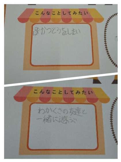 今日の国語では「自己紹介カード」を書きました。「わかくさの友達と一緒に遊びたい」「部活動をがんばりたい」……。1日も早く平穏な日々に戻りますように。