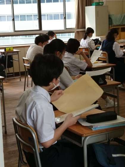 2年生【奇数班】の様子です。朝の学活では、新しい健康観察表を配付し、担任の先生から説明をしました。