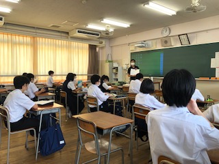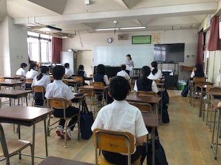 1年生の授業の様子です。音楽では授業のオリエンテーションが、英語と社会ではICT機器を活用した授業が行われました。