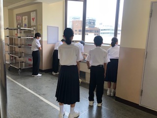 午前の班は、3限終了後に手をきれいに洗って昼食をとります。午後の班は、登校後すぐに手を洗い、昼食を食べてから、授業がスタートです。だんだん慣れてきました。