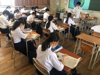 社会の授業では、地球をいろんな角度から見て、大陸や海洋の名称について詳しく学んでいます。