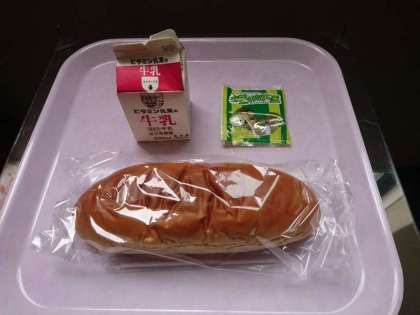 今日のメニューは、黒糖パンと牛乳、まっ茶大豆です。あと4日は簡素な形ですが、しっかりといただきましょう!