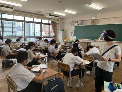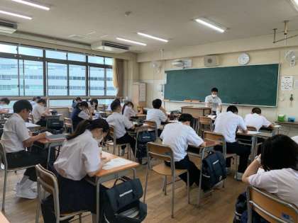 来週からの学校生活に向けて、「読書カード」などの準備をしています。写真は1組、2組、3組の様子です。