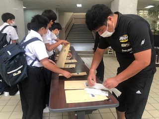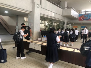1年生は、今日から3日間、部活動の仮入部期間になります。登校した生徒たちは、興味がある部活動に参加するため、仮入部届けを提出しています。