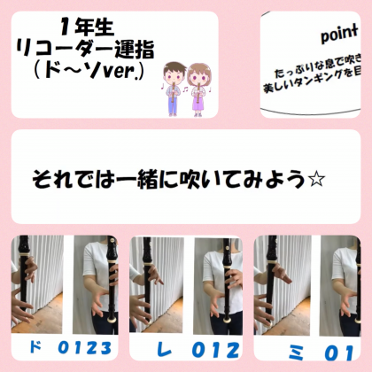 ♪1年生 リコーダー運指♪(ド〜ソver.)(こちらをクリックしてYouTubeでご覧ください)