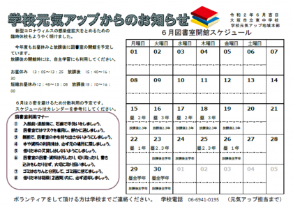 学校元気アップからのお知らせ(6月図書館開館スケジュール)