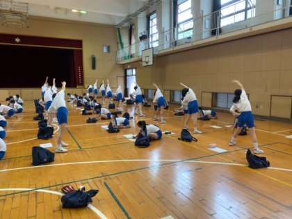 間隔を取り、声を出さず、音楽に合わせての体操でしたが、みんな一生懸命やっていました。