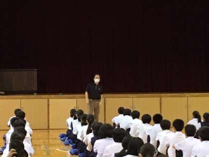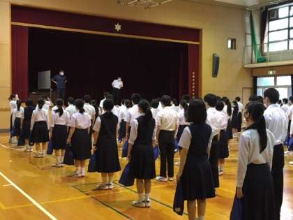 3年生になって初めての朝の学年集会です。学年の先生が、竹の成長になぞらえて、生徒たちに向けてのメッセージを伝えました。3年生の皆さん、1、2年生の間にしっかりと生やした根っこ、そして、用意してきた節目を成長させるスイッチを入れましょう!