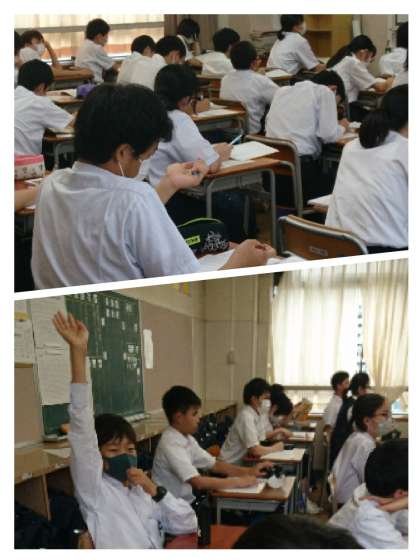 先生方の問いかけに対して、自分自身で考えた後、周りの生徒と意見交流をしています。様々な意見が積極的に述べられています!