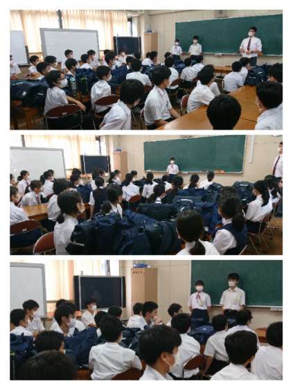 あいさつの大切さや、周りを見て行動することの大切さについて顧問から話がありました。また、入部したからには引退まで続ける!という強い意思を持ってほしい旨もお伝えしました。