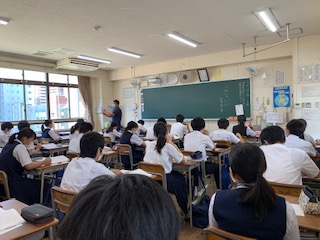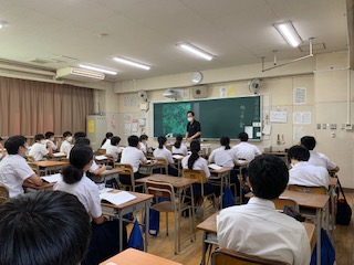 暑い中での全校集会の後ですが、皆、集中して授業に取り組んでいます。