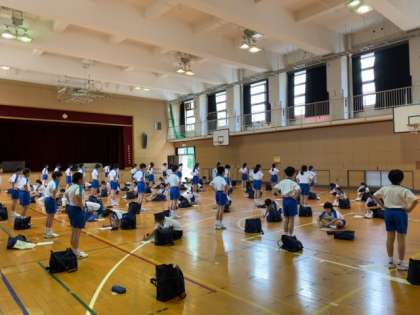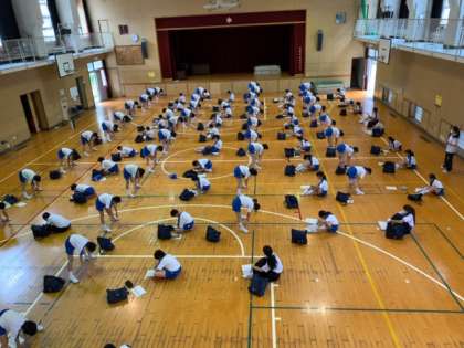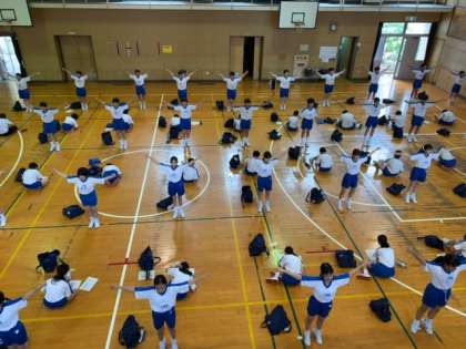 1年生1・2組は東中体操の観点チェックを行なっています。
