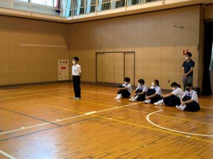1年生体育委員は昼休みに、号令の練習を行いました。