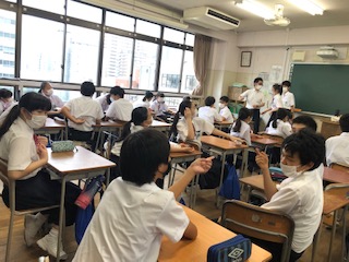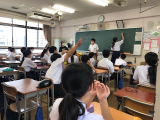 7限の学活では体育大会に向けて、クラスを表す漢字2文字の言葉を考えました。話し合い方にもクラスの個性が出ます。