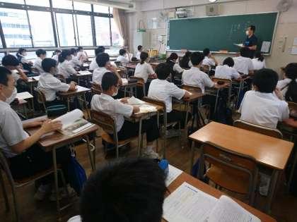 今日は、いじめ問題や人との関わりについてクラスで考えています。