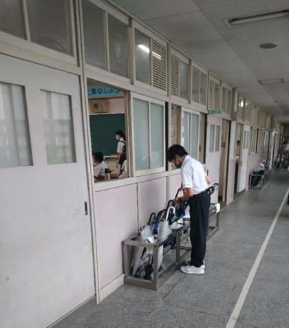 登校後の手洗いは、習慣づいてきたようです。傘についても、率先して整頓してくれている生徒がいました。