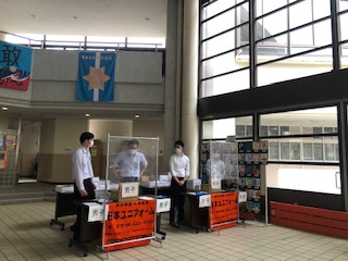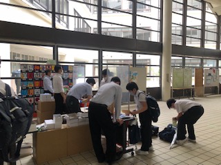 今日は、業者の方々が、玄関ホールで水着の販売を行っています。明日の朝も行いますので、お買い忘れのないようご注意ください。