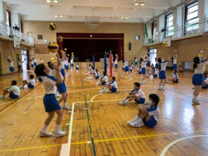 2年生はバレーボールの実技テストに入っています。