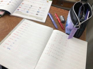 テスト前で、ワークやノートをまとめています。きれいに書けていますね。