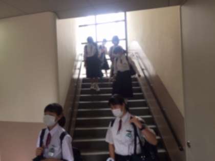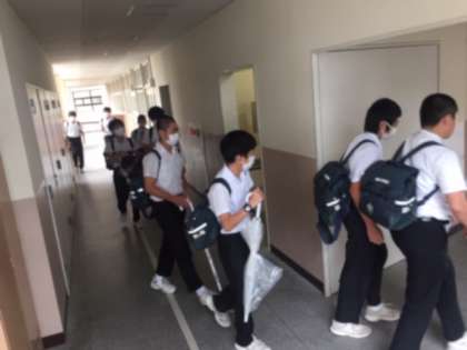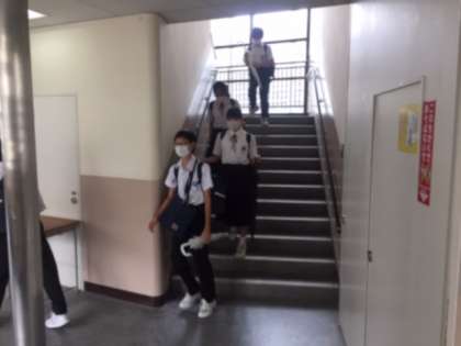 緊急時下校班編成の取り組みの中で、災害時の避難経路の確認も行われました。災害時の行動、避難についてのお話を聞きました。各学年で決められた避難経路を使用して、蜜にならないよう間隔をあけて歩いて行動しました。