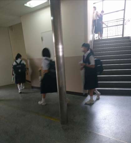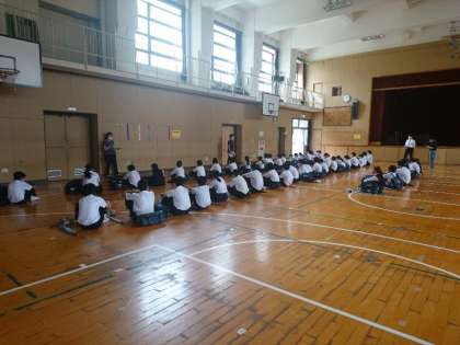 本日は避難経路の確認もあわせて行っています。「おかし」を意識して、安全に避難できるようにしましょう。