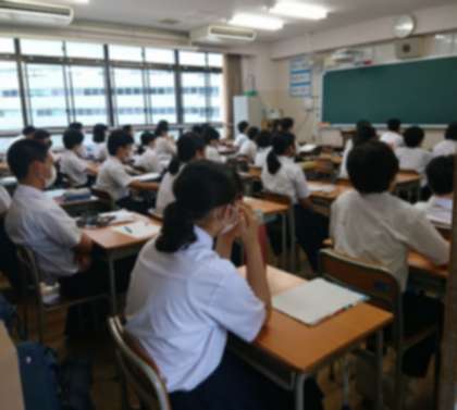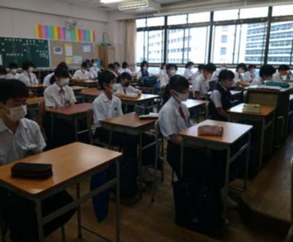 校長先生や養護教諭による講話(放送)を、教室内で真剣に聞いています。