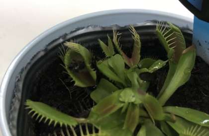 今から植えられる苗や種を購入し、学校に帰ってきました。チーム昆虫は、食虫植物にハエを食べさせてみて、触覚を確かめました。
