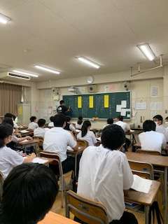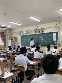 セミが激しく鳴き、蒸し暑い朝ですが、熱心に道徳の授業を受けています。