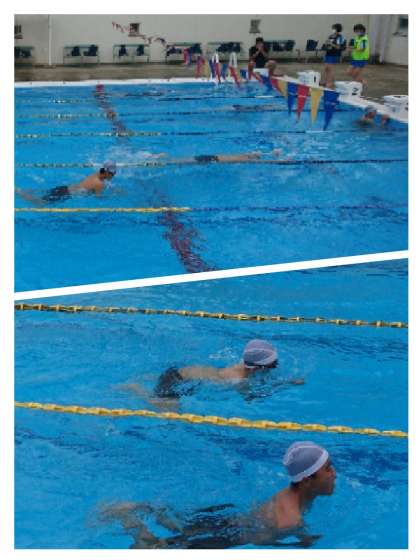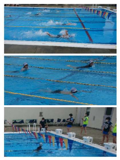 保健体育の授業では、クロールと平泳ぎのタイムを計測しています。