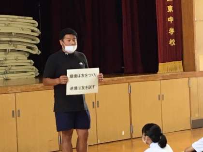 北村先生からお話がありました。先日、今年度の学校行事の変更がお知らせとして示されました。皆さんが今まで積み重ねてきた集団としての在り方が、今試されているのではないでしょうか。この逆境を33期生全員で乗り切れるように頑張っていきましょう!