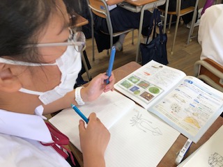 理科の授業では無脊椎動物について学んでいます。イカの解剖動画では「おぉ」という声が上がりました。