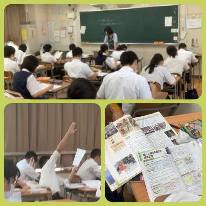 資料を読み解き、考察しながら学習を進めています。積極的に挙手して答える生徒の姿が印象的です。