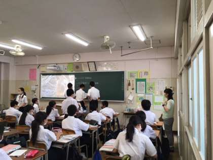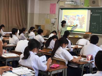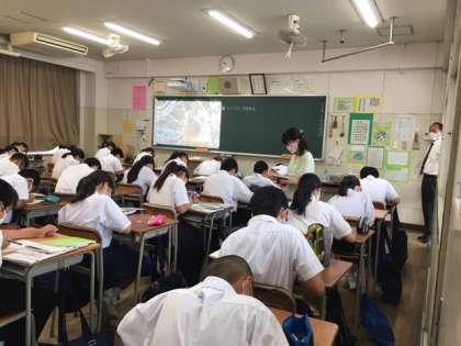 1年生理科の授業の様子です。無脊椎動物について、小テストをしたり動画を見たりしながら楽しく学習しています。