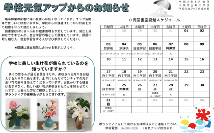 学校元気アップからのお知らせ(8月号)です。(こちらをクリックするとご覧いただけます)