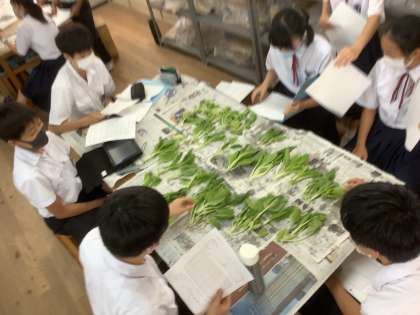 大阪市なにわの伝統野菜の1つである「大阪しろな」の収穫をしました。臨時休業明けの6月に、種を撒き、水やりをし、1学期の最期の授業で収穫しました。一人ひとりの生徒たちも、心の中にそれぞれの種を撒き、育てています。