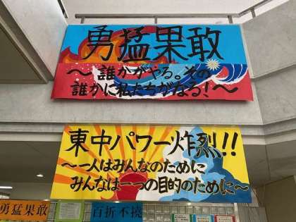 夏休みも各部活動では、様々な制限がありながらの活動ですが、今こそ「百折不撓」の精神で東中パワーを炸裂させましょう!頑張れ東中生!