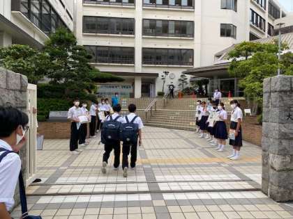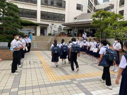いよいよ、1学期最後の登校となりました。継続して取り組んできた部活動部長会議のあいさつ活動も最後です。