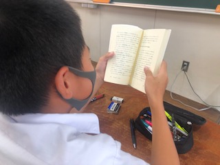 健康チェックがあり、朝読書が始まっています。静かに読書をすることで、気持ちが落ち着きますね。