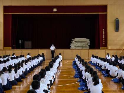 2限は体育館で学年集会が行われています。