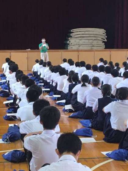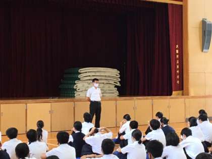 今学期最後の学年集会でした。新型コロナウイルス感染症の影響で短い期間でしたが、3年生の自覚は出てきましたか。2学期以降は行事が多く予定されており、進路も本格的に始まります。時間の使い方をしっかりと意識しましょう。また、生活面でも夏休み中に崩れないように過ごしてください。