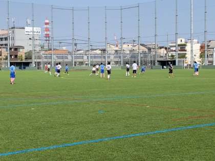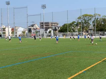 サッカー部は明日の公式戦に向けて、大枝公園で練習試合を行いました。