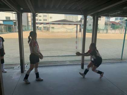 試合前からしっかり準備を行い、試合に挑みました。3セットまでもつれましたが、ブロックでの得点、声かけがしっかりできて、連携もうまくいき、雰囲気よく試合を進めることができました。