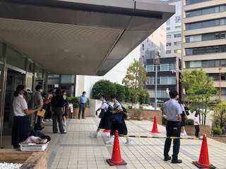 玄関では部活動の部長が挨拶運動しました。